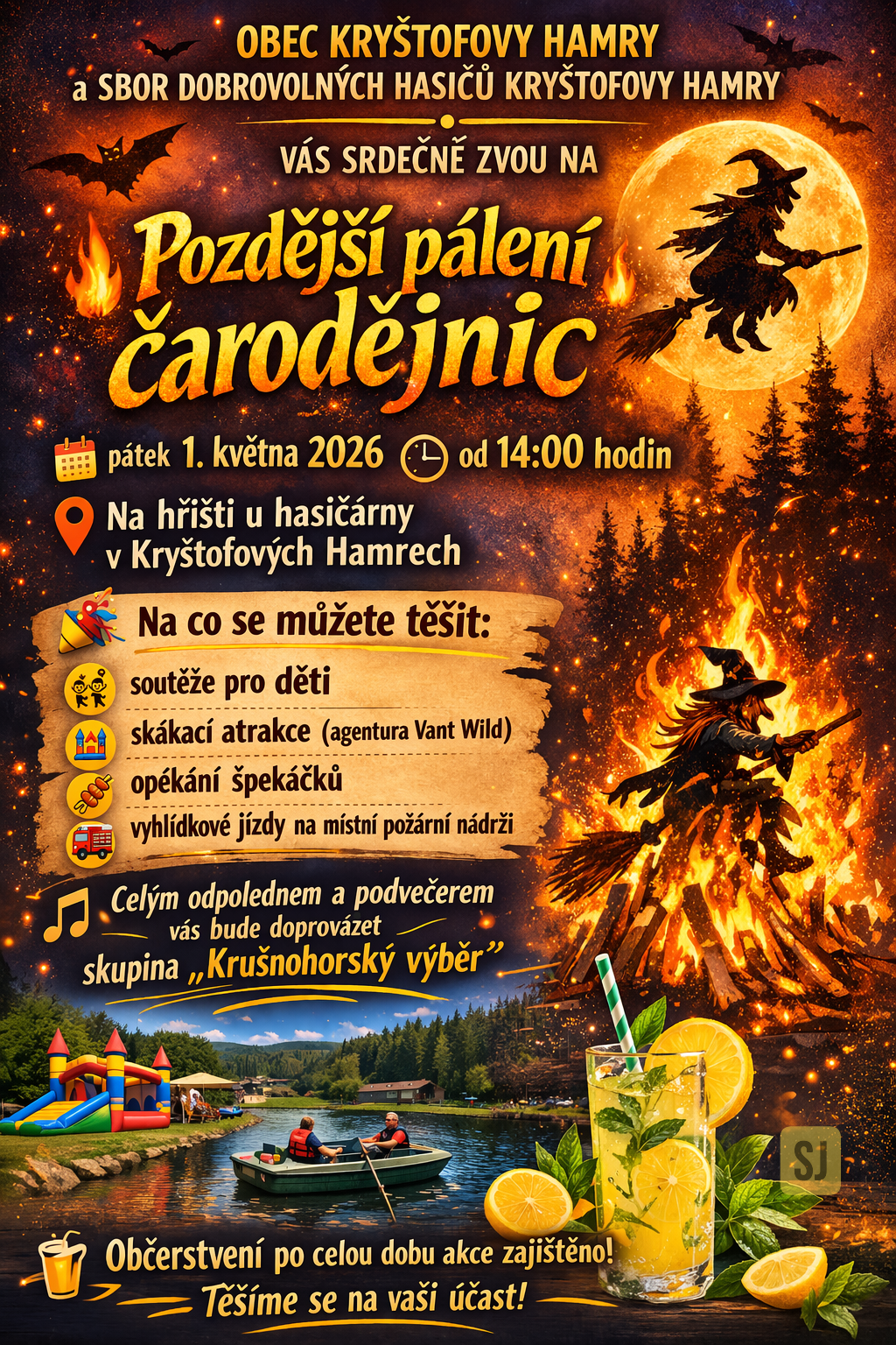 !!! POZOR !!!….V pátek 1.5.2026 od 14.00 hodin….akce „pozdější Pálení čarodějnic“ v Kryštofových Hamrech u požární nádrže