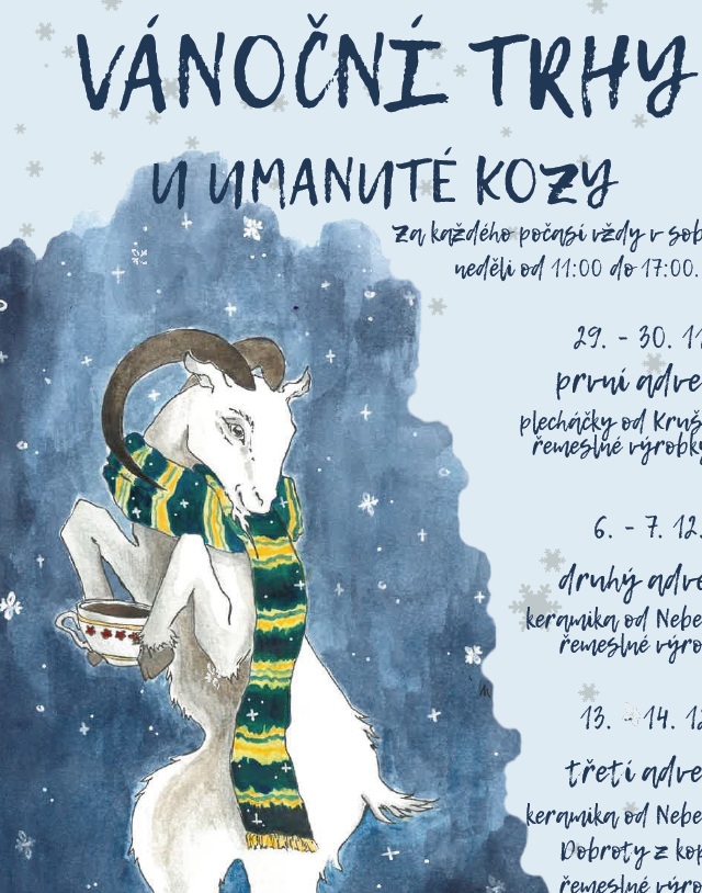 Vánoční trhy u Umanuté kozy proběhnou za každého počasí vždy v sobotu a neděli od 11.00 – 17.00 hodin v termínu od 29.11 do 21.12.25.